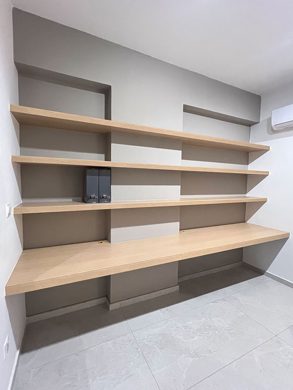 - Impressive wall claddings with melamine from Cyprus Forest Industries, decorated with aluminum strips that enhance the contemporary aesthetic of the space