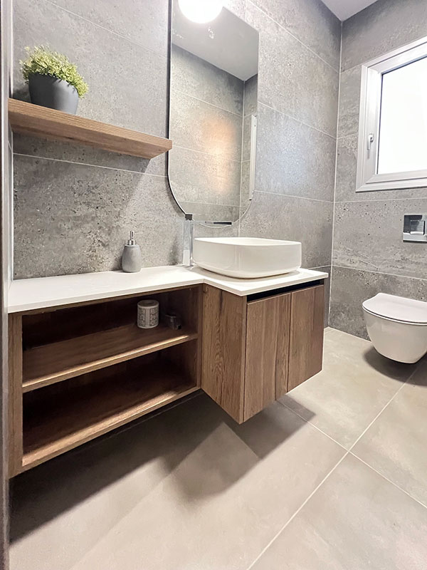 - Washbasin counters with EGGER H1181 melamine (KG Kyriakides) & Alvic Cashmere