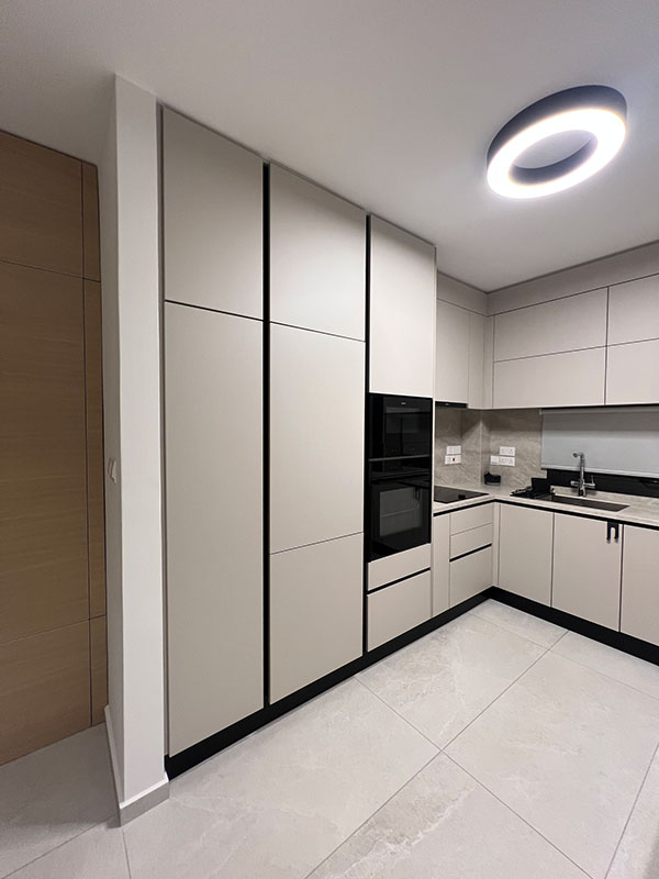 - Modern kitchen with Alvic Cashmere melamine, offering elegance and durability